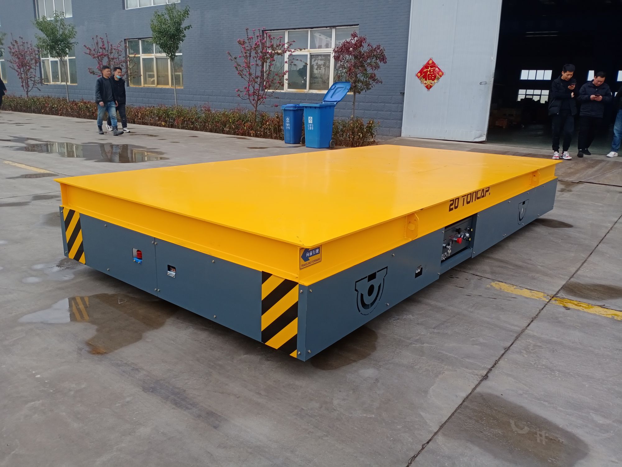 客戶這邊是搬運(yùn)大物件,在車間來回轉(zhuǎn)運(yùn),因為使用頻率高,叉車搬運(yùn)不了大物件,所以采用無軌搬運(yùn)平板車