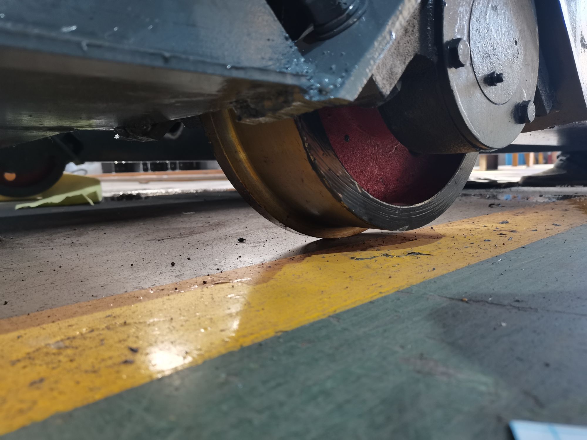 這是客戶為終端提供的工程中的一套設備,要處理的事不同直徑長度的筒體,車體臺面設有電動滾輪架,防竄動端部定位輪,鏤空臺面方便砂粒堆積,是一套專用定制設備。