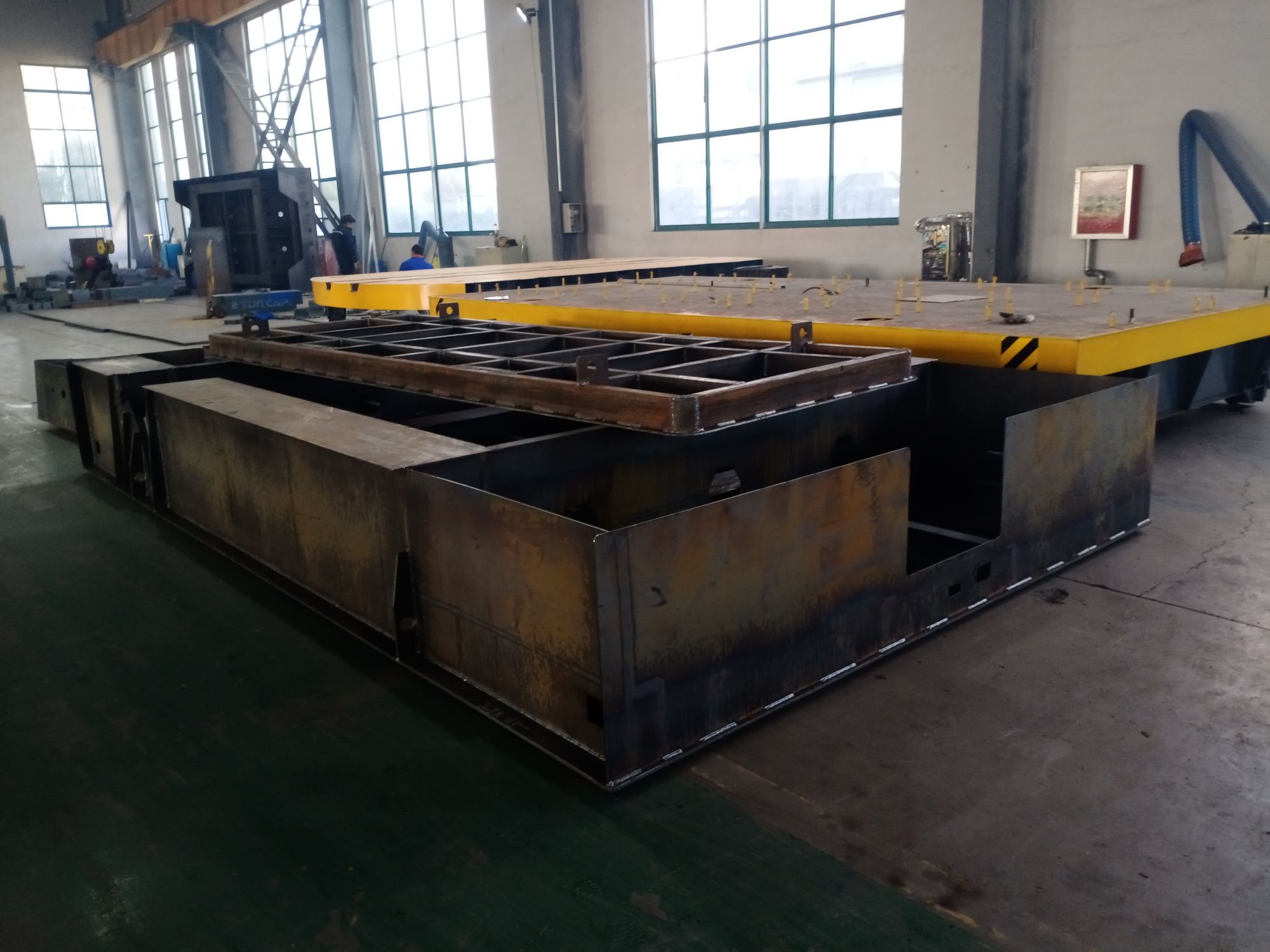 長*寬=5000*3000,載重需要30t的,車輪采用專業的鑄鋼+聚氨酯包膠實心輪,車上有平衡梁,保持上部水平,小車具有前進后退,邊走邊轉彎,原地旋轉的功能,無線遙控操作,更有應急的有線手柄作為備用。整車部件傳動穩定..